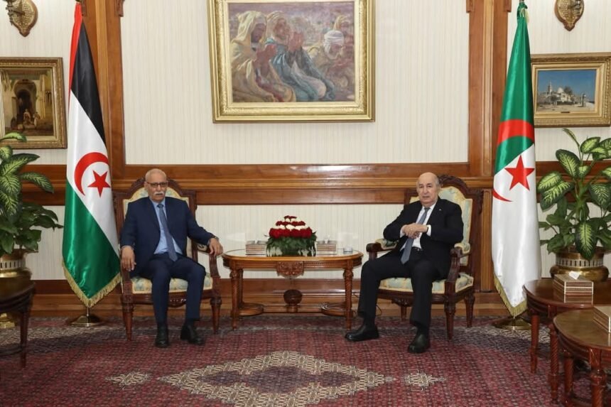 الحدثالوطني الرئيس تبون يستقبل رئيس الجمهورية الصحراوية اخر تحديث : 2025/04/30 على 9:01 مساءً بواسطة القبس الجزائرية منذ 9 أشهر مضت شارك استقبل رئيس الجمهورية عبد المجيد تبون، مساء اليوم الأربعاء. إبراهيم غالي، رئيس الجمهورية العربية الصحراوية الديمقراطية.وحسب بيان لرئاسة الجمهورية الجزائرية. فقد تباحث الرئيسان حول العلاقات الثنائية بين البلدين. كلمة دلالية : ابراهيم غالي, الجزائر, الصحراء الغربية, رئيس الجمهورية, عبد المجيد تبون القبس الجزائرية 30 أبريل، 2025 30 أبريل، 2025 شارك هذه المقالة فيسبوك تويتر Whatsapp Whatsapp LinkedIn المقالة السابقة رئيس الجمهورية: نحن على نفس الإرادة لمواصلة تعزيز المكاسب المحققة لعالم الشغل المقالة التالية توقيف فتاة قامت بنشر محتوى مخل بالحياء وتحرض على الفسق والرذيلة اترك تعليقا اترك تعليقاً إلغاء الردلن يتم نشر عنوان بريدك الإلكتروني. الحقول الإلزامية مشار إليها بـ *التعليق * الاسم * البريد الإلكتروني * الموقع الإلكتروني احفظ اسمي، بريدي الإلكتروني، والموقع الإلكتروني في هذا المتصفح لاستخدامها المرة المقبلة في تعليقي. أحدث التعليقاتتيسمسيلت: توقيف شبكة إجرامية بحوزتها 5739 قرص…8 يناير 2026768 viewsالفاف يتقدم بشكوى رسمية إلى الكاف والفيفا11 يناير 2026714 viewsالحارس الدولي أسامة بن بوط يعلن اعتزاله…12 يناير 2026698 viewsأحدث التعليقات