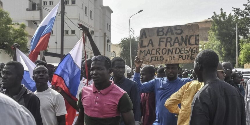 كما انتزع بعض المتظاهرين اللوحة التي تحمل عبارة “سفارة فرنسا في النيجر” وداسوا عليها ووضعوا مكانها علمي روسيا والنيجر.
