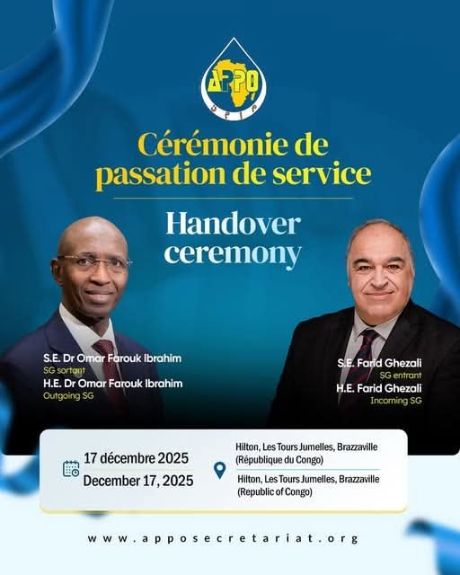 وجرت مراسم تسليم واستلام المهام بينه وبين الأمين العام المنتهية عهدته عمر فاروق إبراهيم، في إطار انتقال منظم للقيادة داخل المنظمة، وتأكيدًا على استمرارية عملها وتعزيز دورها في التعاون الطاقوي الإفريقي.
