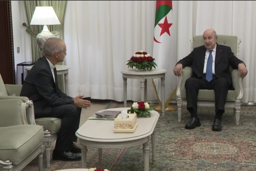 الحدثالوطني رئيس الجمهورية يلتقي رئيس أساقفة الجزائر اخر تحديث : 2024/11/06 على 1:57 مساءً بواسطة القبس الجزائرية منذ سنة واحدة مضت شارك تباحث رئيس الجمهورية عبد المجيد تبون، اليوم الأربعاء، مع رئيس أساقفة الجزائر جون بول فيسكو.وجاء في بيان لرئاسة الجمهورية على صفحتها الرسمية بمنصة (فايسبوك)، أنّ اللقاء حضره وزير الشؤون الدينية والأوقاف يوسف بلمهدي. كلمة دلالية : الجزائر, رئيس الجمهورية, عبد المجيد تبون القبس الجزائرية 6 نوفمبر، 2024 6 نوفمبر، 2024 شارك هذه المقالة فيسبوك تويتر Whatsapp Whatsapp LinkedIn المقالة السابقة ترامب يفوز بالانتخابات الرئاسية الأمريكية 2024 المقالة التالية الرئيس تبون يهنئ ترامب بمناسبة انتخابه رئيسا اترك تعليقا اترك تعليقاً إلغاء الردلن يتم نشر عنوان بريدك الإلكتروني. الحقول الإلزامية مشار إليها بـ *التعليق * الاسم * البريد الإلكتروني * الموقع الإلكتروني احفظ اسمي، بريدي الإلكتروني، والموقع الإلكتروني في هذا المتصفح لاستخدامها المرة المقبلة في تعليقي. أحدث التعليقاتتيسمسيلت: توقيف شبكة إجرامية بحوزتها 5739 قرص…8 يناير 2026791 viewsالفاف يتقدم بشكوى رسمية إلى الكاف والفيفا11 يناير 2026735 viewsالحارس الدولي أسامة بن بوط يعلن اعتزاله…12 يناير 2026722 viewsأحدث التعليقات