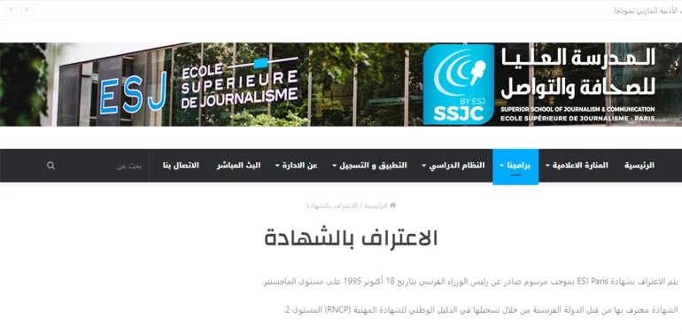 الموقع الإلكتروني السابق للمدرسة العليا للصحافة شوت سكرين