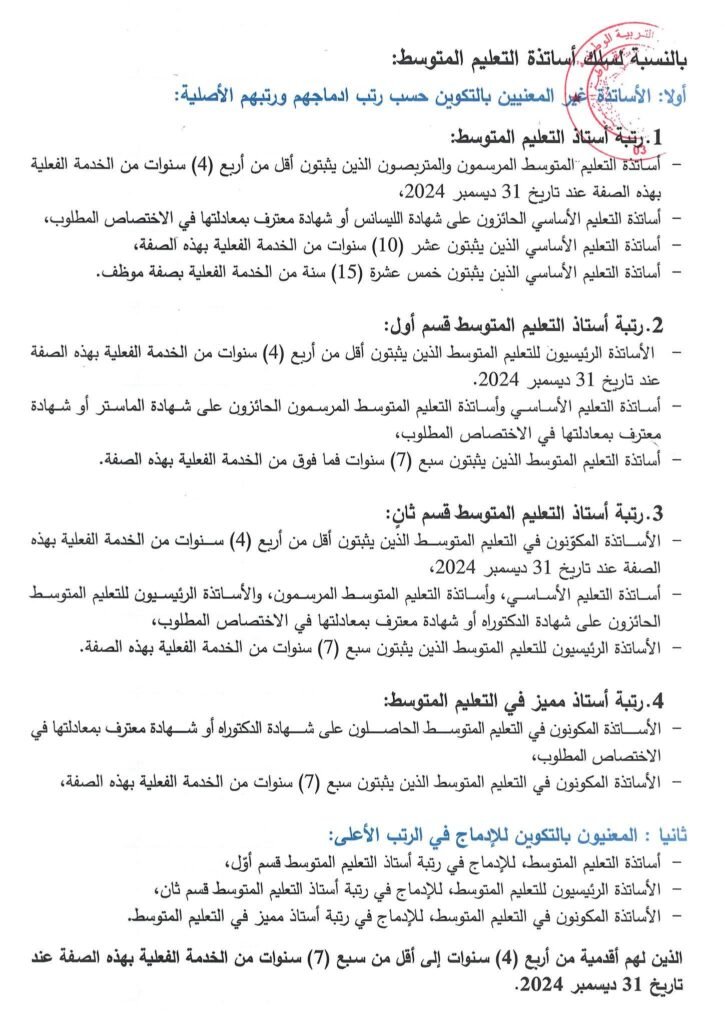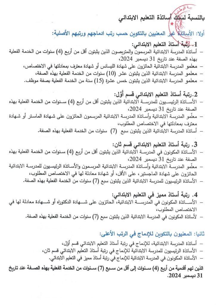 كما شددت الوزارة على أن الاستفادة من الزيادات في الأجور والمزايا المرتبطة بالرتبة الجديدة ستكون مباشرة بعد استكمال التكوين.