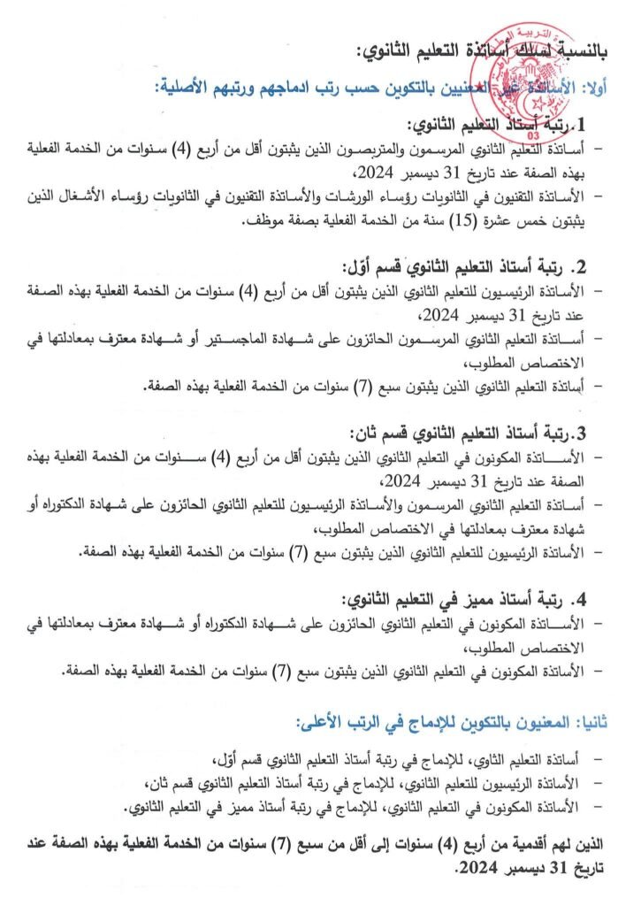 بيّنت وزارة التربية أن عددًا من الأساتذة غير معنيين بالتكوين، حسب الرتبة الأصلية ورتبة الإدماج، وذلك في الأطوار الثلاثة (الابتدائي، المتوسط، الثانوي)، ومن بينهم: